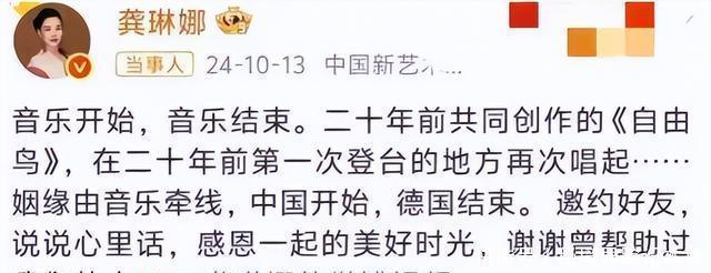 有时候感情就是这么奇怪, 她是被抛弃的那一个,却依然在替对方保留体面 。 而老锣呢?早已回到德国,和那位奥地利新欢低调同居,偶尔在社交媒体上晒点音乐项目,对龚琳娜的书只留下一句酸酸的评论:“别忘了作曲是谁。”